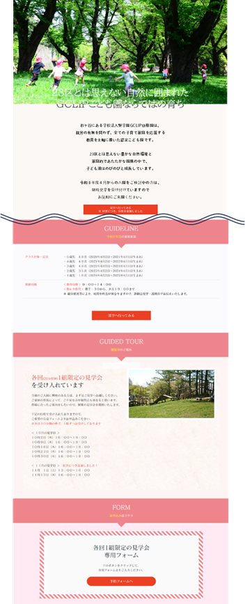 ランディングページには、自園の教育的な特色とともに、