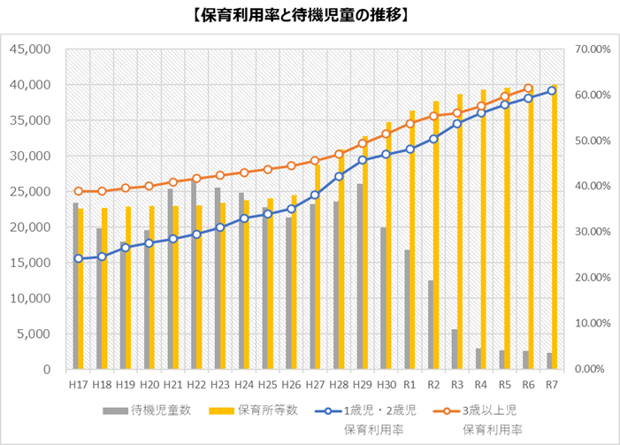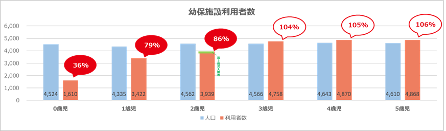 実際、厚生労働省のデータによると、1歳児・2歳児の利用率は、