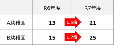 どちらの園も申込者数が約1.6倍に増加しました。