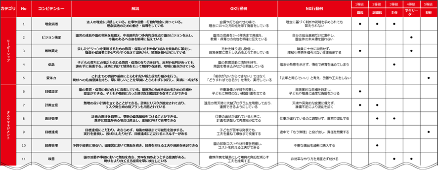 評価制度は、園として重要視したい要素を項目ごとに整理し、