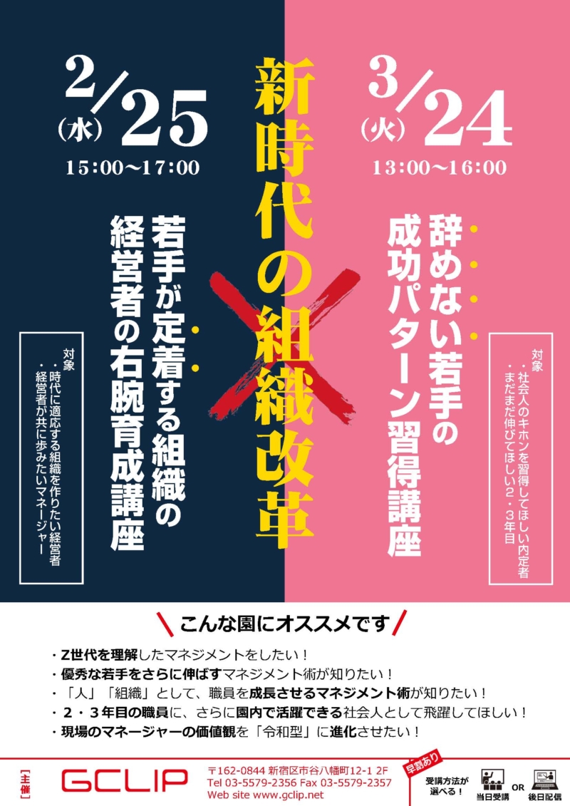 No2先生向け講座&若手先生向け講座の2部構成セミナー! 2026.2.25&3.24開催|新時代の組織改革セミナー