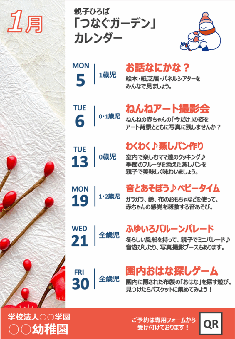 今回のツールは、未就園児向けの親子ひろばのカレンダーです。未就園児向けの開催日をプチイベント紹介とともに...(残り454文字)